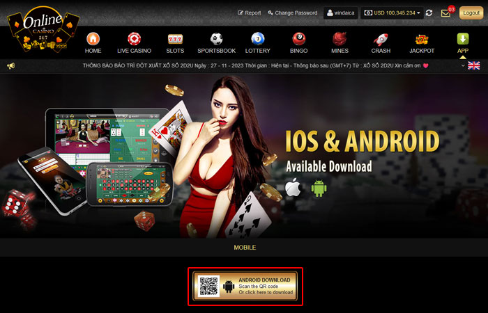 - ในการดาวน์โหลด แอพพลิเคชั่น เพียงคลิกปุ่มดาวน์โหลดที่เว็บไซต์ https://android1.alt-api.com/LiveCasino.apk บนอุปกรณ์มือถือแอนดรอยด์ของคุณ หรือสแกนที่ QR โค้ด. หากท่านมีบัญชีชื่อผู้เล่นอยู่ ท่านสามารถเข้าสู่ระบบโดยใช้รายละเอียดของบัญชีที่มีอยู่